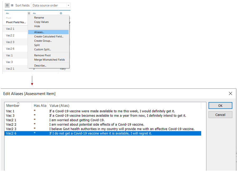Step 3: Right click the drop down list and select “Aliases”. Edit the “Value (Alias)” column to as shown below and click “OK”.