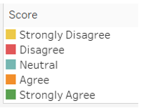 | 5 | The colour of categories are all different, which makes it difficult to relate the closeness of e.g. “1 - Strongly agree” and “2”. | Use same colour, but different tone for similar responses. E.g. Dark green for “1 - Strongly agree” and light green for “2”. |