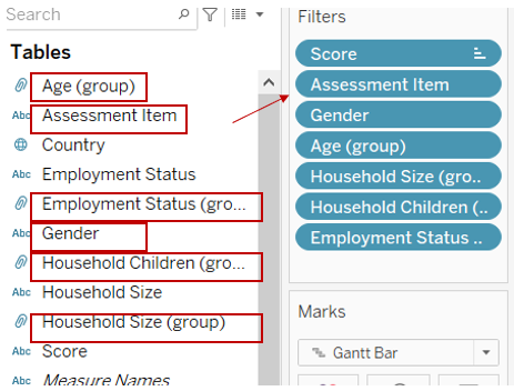 Step 9: Drag these variables (in red boxes) into “Filters” as shown below.
