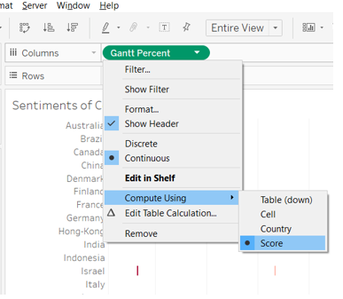 Step 4: Click on “Gantt Percent”, click on “Compute Using” and select “Score”.