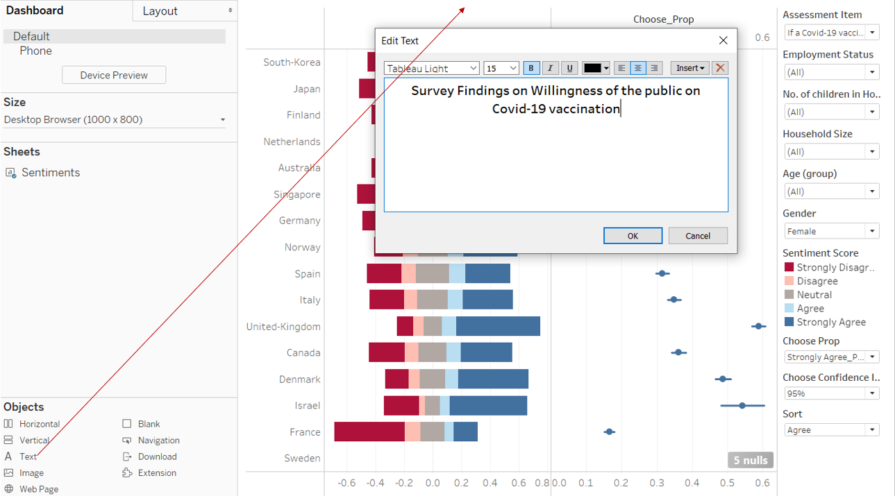 Step 2: Drag “Text” to above the chart and input the title for the chart as shown.