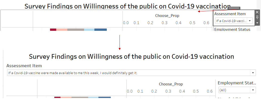 | 1 | Includes survey findings on other questions instead of just on “Vac 1” so that users can have a broader view on the sentiments of respondents. In addition, it shows the exact question asked in the survey for users to see. |